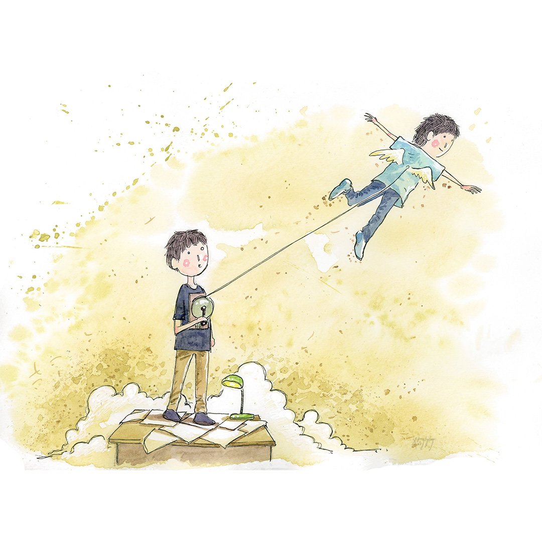 [飛一下] 「我要出去飛一下喔!」 好,不過不要飛太遠囉! 「為什麼?」 因為我偶爾需要你,陪我一起踩在地上 散散步