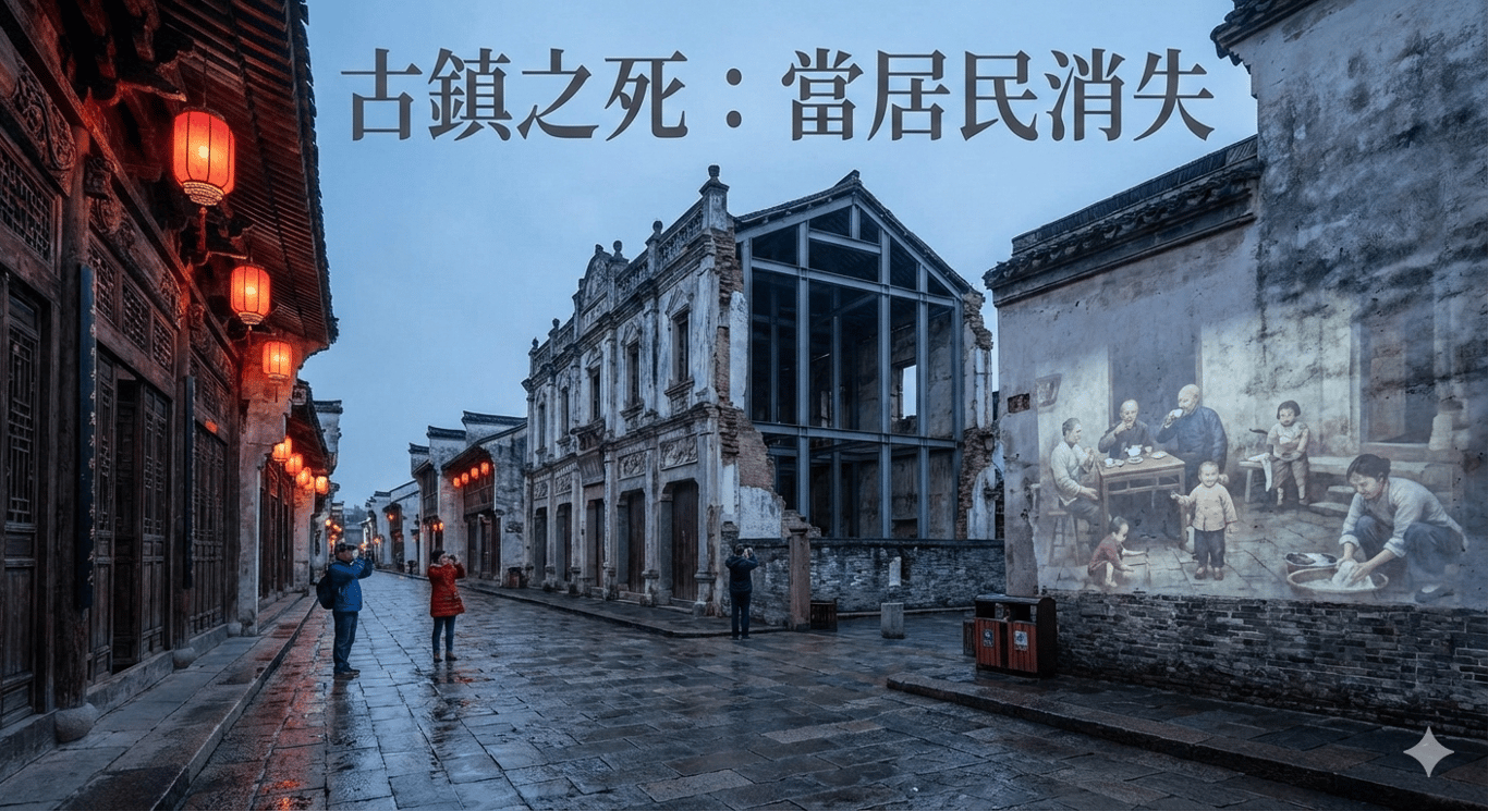 時間紅利與古鎮的早期熱度 在中國大陸,古鎮曾經是一種自然生成的空間:居民生活、日常活動、街巷互動構成了它的活力。鳳凰古鎮、支援古鎮,以及上海附近和安徽一些有名氣的古鎮,最初的熱度來自於時間紅利:人民剛開始有餘錢消費,想看世界、享受生活,這讓早期開發的古鎮自然吸引了遊客。 古鎮是一個活的生活劇場 大家會去古鎮,不是…